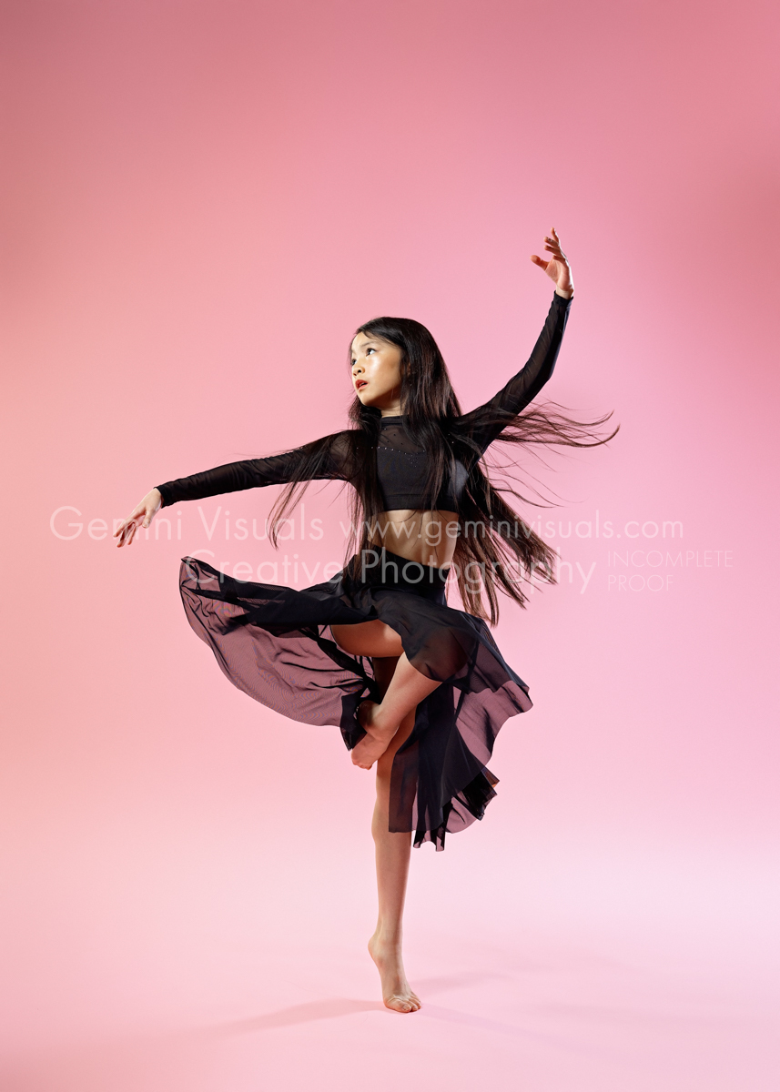 Final images will be edited to correct colour, basic skin/hair retouching etc. We will sometimes enhance toe-points or straighten knees. Extra items (lights, equipment, assistants etc) will be removed and backdrop extended.