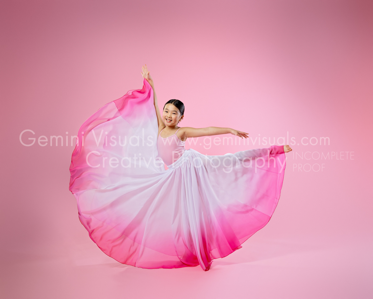 Final images will be edited to correct colour, basic skin/hair retouching etc. We will sometimes enhance toe-points or straighten knees. Extra items (lights, equipment, assistants etc) will be removed and backdrop extended.