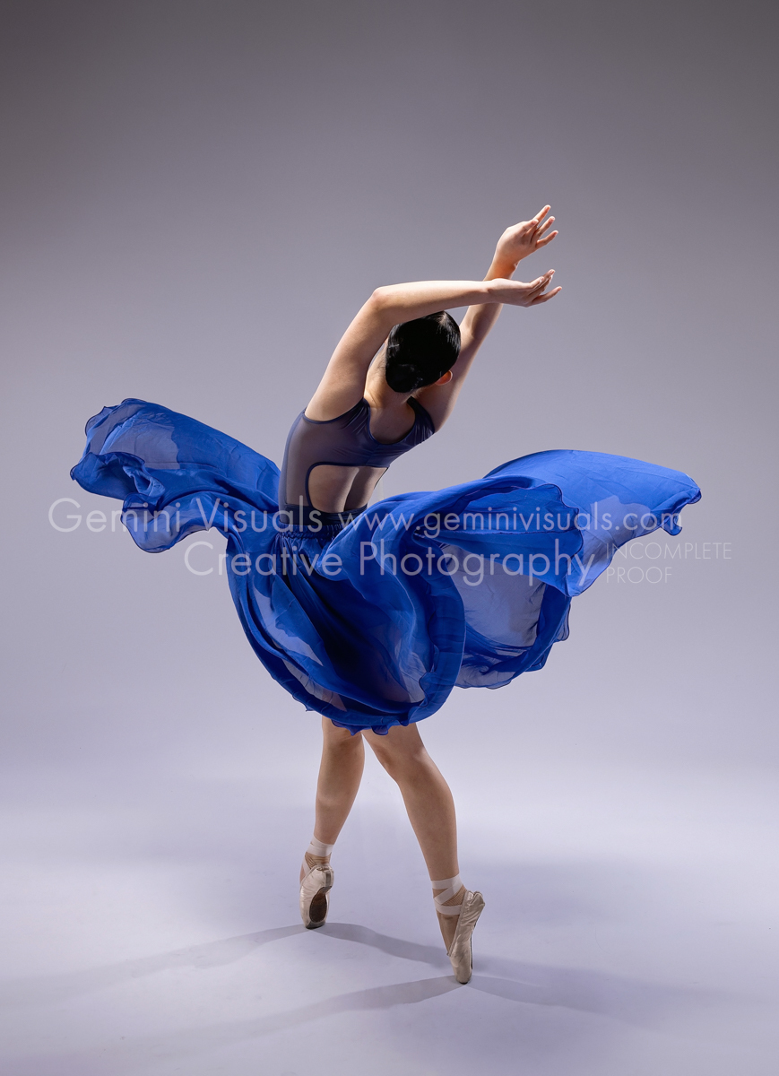 Final images will be edited to correct colour, basic skin/hair retouching etc. We will sometimes enhance toe-points or straighten knees. Extra items (lights, equipment, assistants etc) will be removed and backdrop extended.